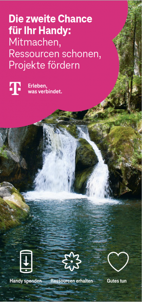 Gerade weil uns die Verbesserung von Lebens- und Umweltbedingungen am Herzen liegt, unterstützt die Telekom Deutschland mit den Erlösen aus der Vermarktung und dem Recycling Projekte im Natur- und Umweltschutz sowie soziale Projekte der Kooperationspartner*innen des Handysammelcenters. Damit schlagen wir eine Brücke zwischen der digitalen Welt, Nachhaltigkeit und sozialer Verantwortung.