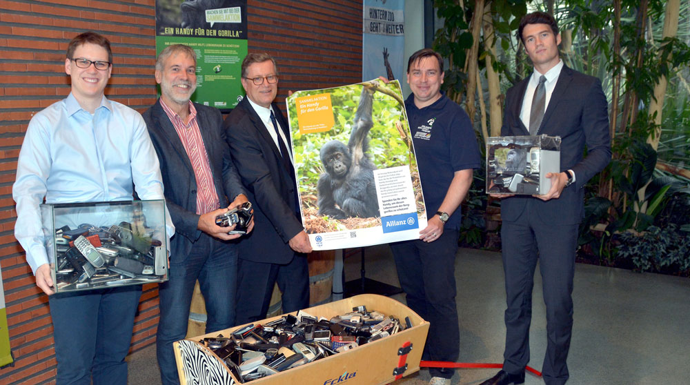 „Bereits seit dem internationalen Jahr des Gorillas 2009 sammeln die ehrenamtlichen Naturschutzbotschafter des Zoos Frankfurt zum Schutz der Berggorillas alte, nicht mehr benötigte Mobiltelefone. Werden Sie selbst aktiv und unterstützen Sie uns! Nachhaltigkeit geht uns alle an.